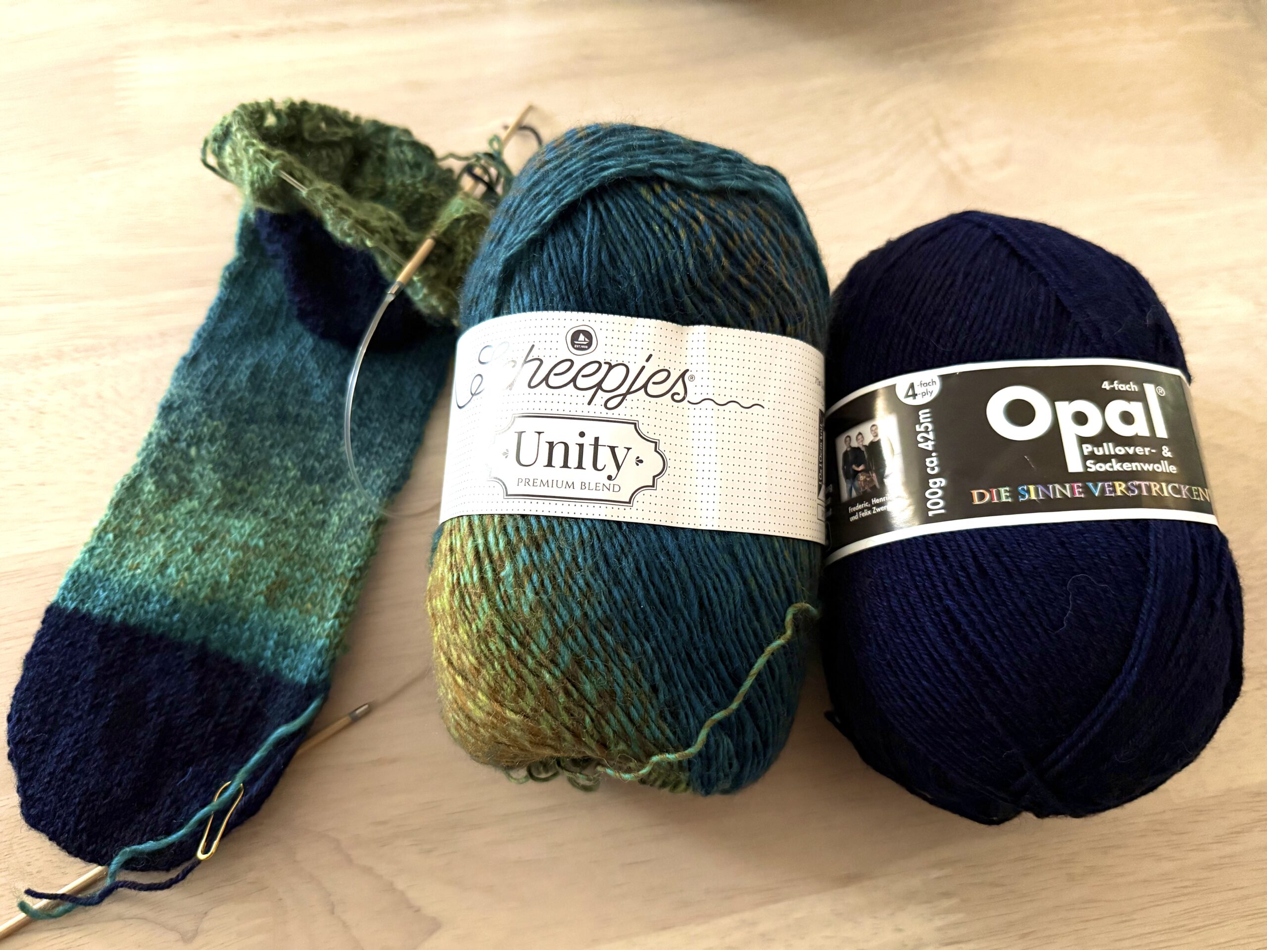 - Scheepjes-シェイプイェス(段染め毛糸)とオパール毛糸(単色)のバイカラーソックスです。レシピはチャットGPTと相談して、オリジナルで編んでみています。